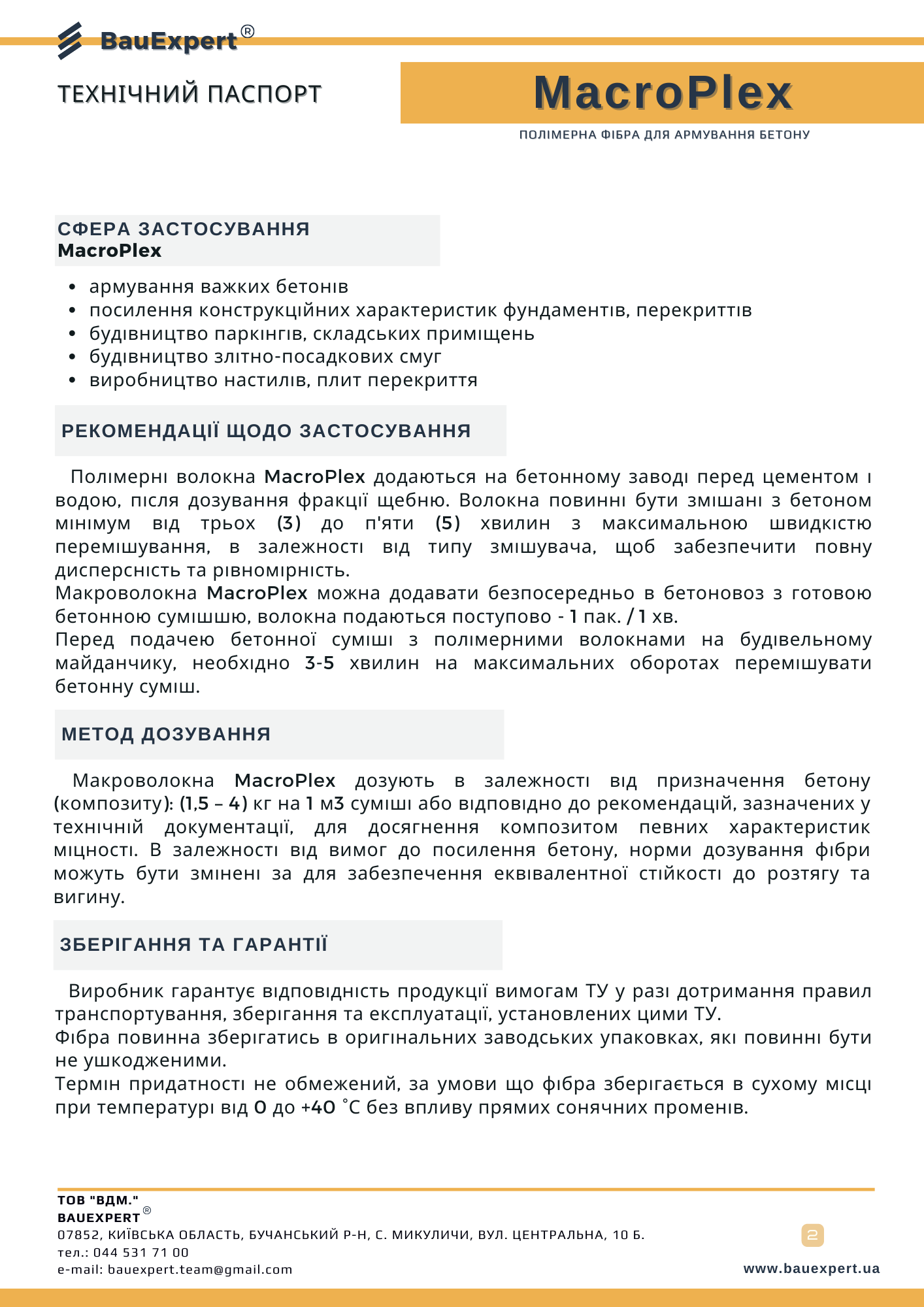 MacroPlex – это полимерное волокно, предназначенное для армирования бетонных поверхностей различного назначения и сборных элементов.