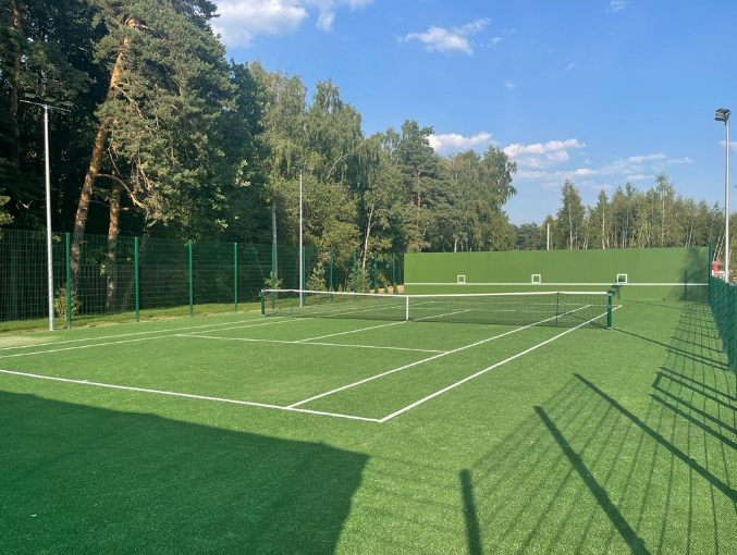 Теннисный корт с покрытием искусственная трава.