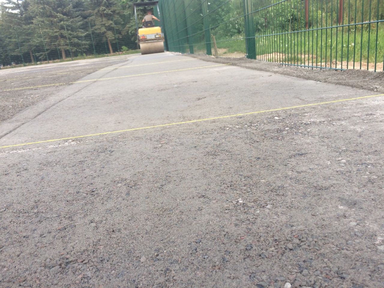 - Укладка покрытия, ворот, нанесение разметки.