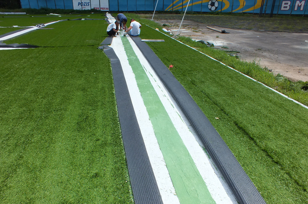 - Строительство футбольного поля с искусственным покрытием закрытого типа.