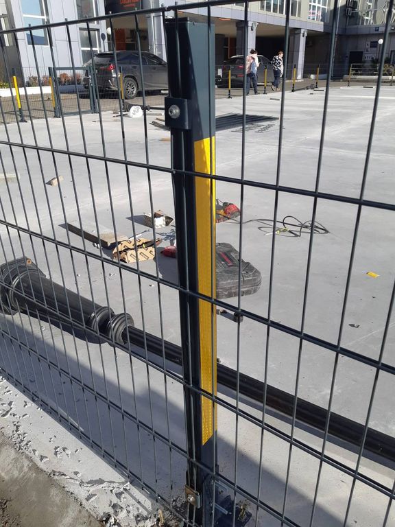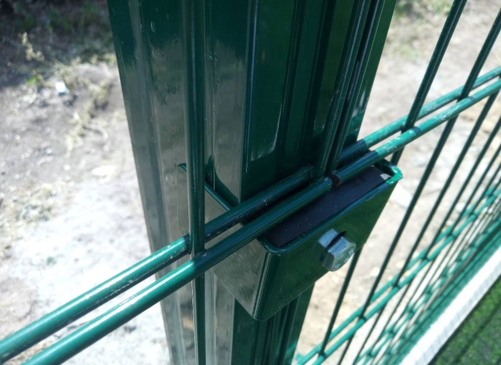 Металлические сетчатые заборы легки в установке. Монтаж заключается в фиксации секций к столбам. Важным является то, что каждая секция устанавливается на базу независимо от других панелей. В случае необходимости замены одной панели нет необходимости разбирать всю ограду, достаточно демонтировать поврежденную часть.